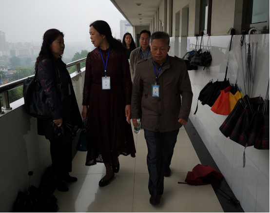 图为罗金铭副校长、尹祝寿院长陪同省教育厅艾美华副处长(左一)巡视